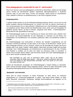 Dies ist ein Versuch, eine neue pädagogische Landschaft zu beschreiben, welche sich seit einigen Jahren inmitten der Monokulturen staatlich organisierter Bildungsinstitutionen in deutlichen Konturen zeigt. Es sind neue Ideen, Formen und Konzepte, welche bereits an verschiedenen Orten, teilweise im Rahmen von Modellversuchen, in die Praxis umgesetzt wurden.